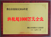 尽管国际形势波诡云谲,国内客观经济起伏跌宕,公司纳税1486万元,被佛山市南海区人民政府授予“佛山市纳税超1000万元企业”荣誉。